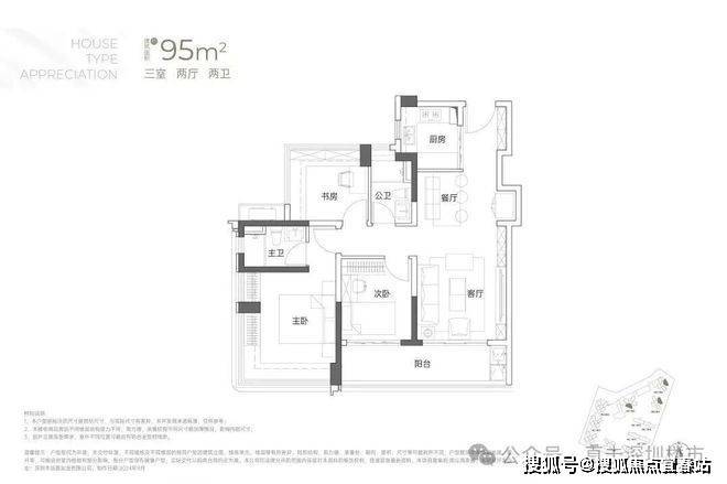 (1)95㎡3房2卫,折后总价808万-838万;