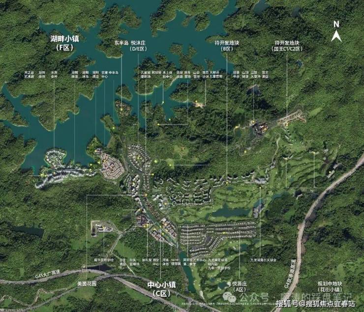 项目重点建设中心小镇C区、艺术聚落F区、伴山美地B区三大园区,并串联现状山地游乐、国王酒店、欧洲小镇与集散中心。