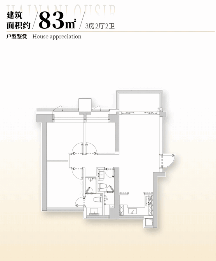建面约83㎡3房2卫,折后总价约400-412万;