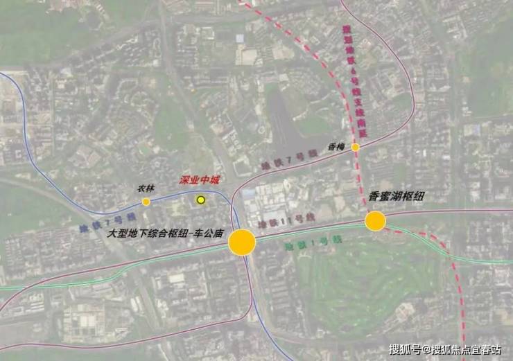 1、7、9、11 号线换乘站【车公庙站】,距离地铁站约 500 米