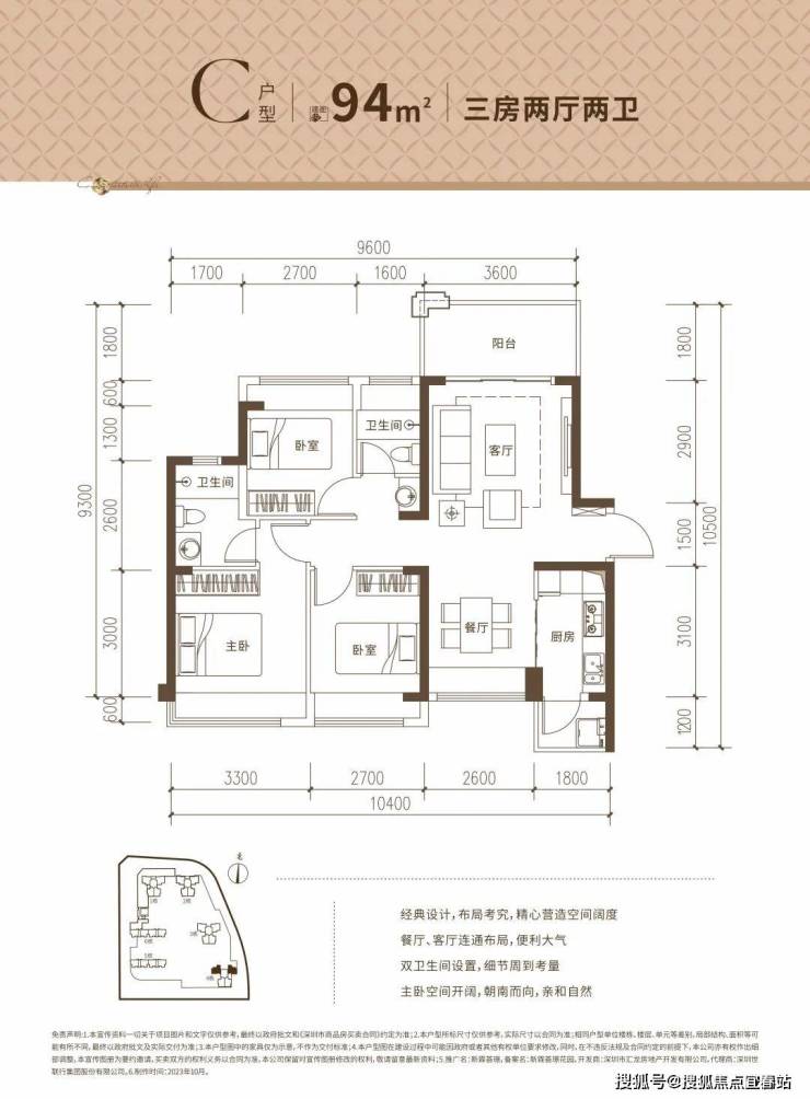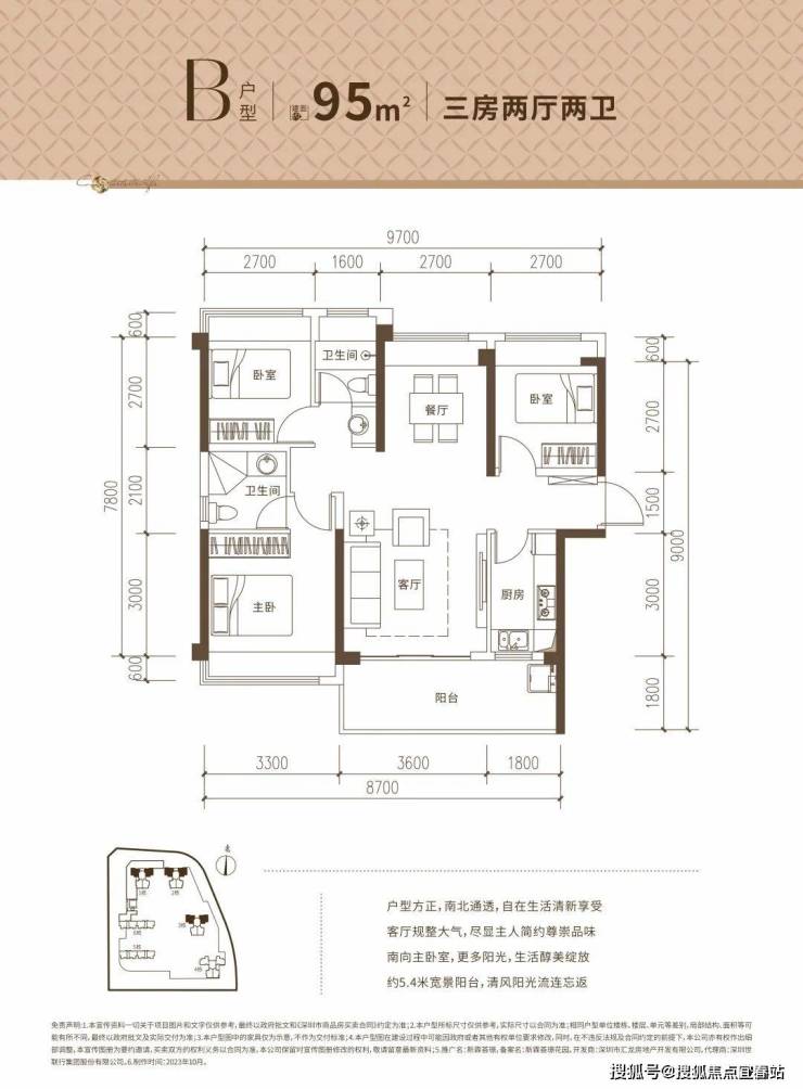 B户型:约95㎡3房2厅2卫