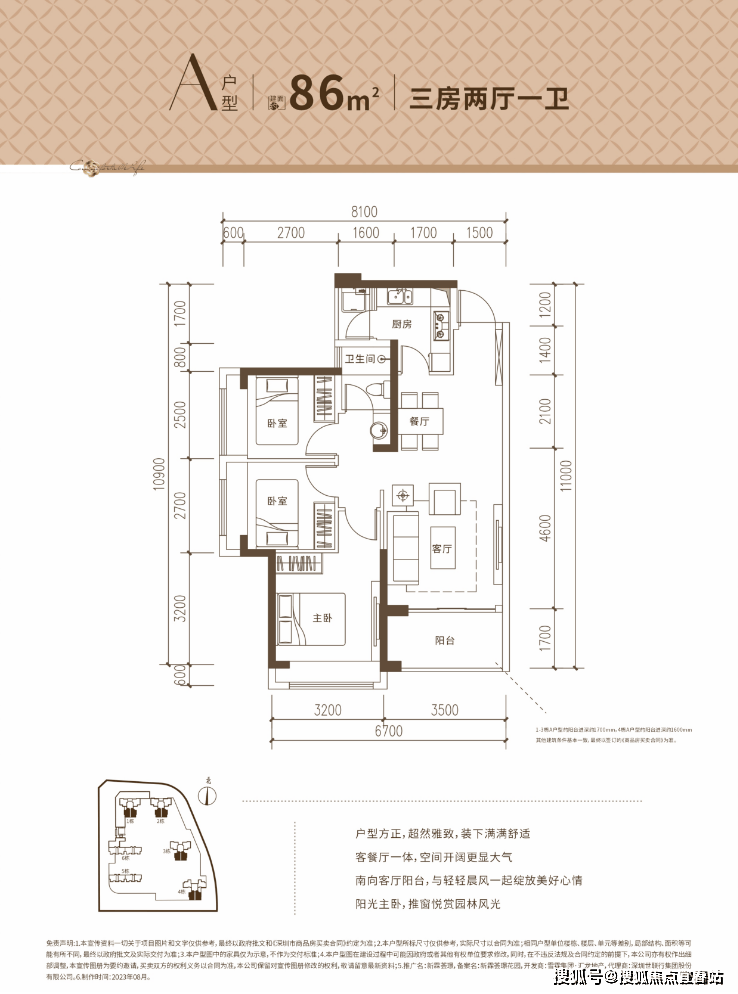 A户型:约86㎡3房2厅1卫