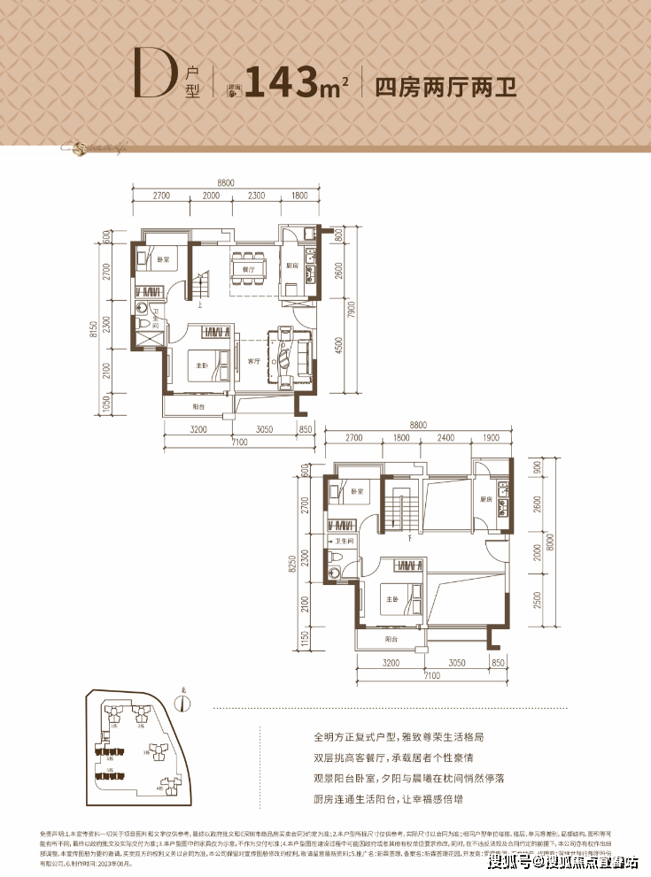 D户型:约143㎡4房2卫2阳台