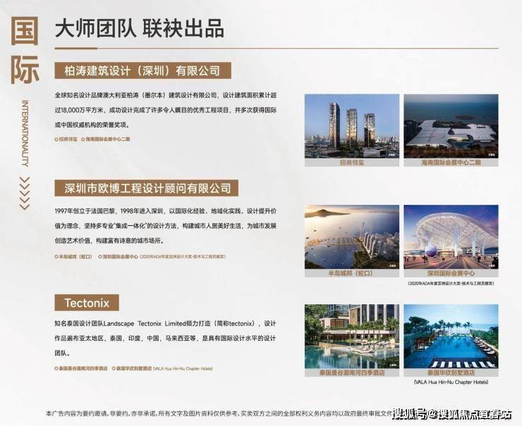 盛邀国际大师团队,澳大利亚柏涛、法国欧博、泰国tectonix联袂巨献;细节铸就品质生活样本。