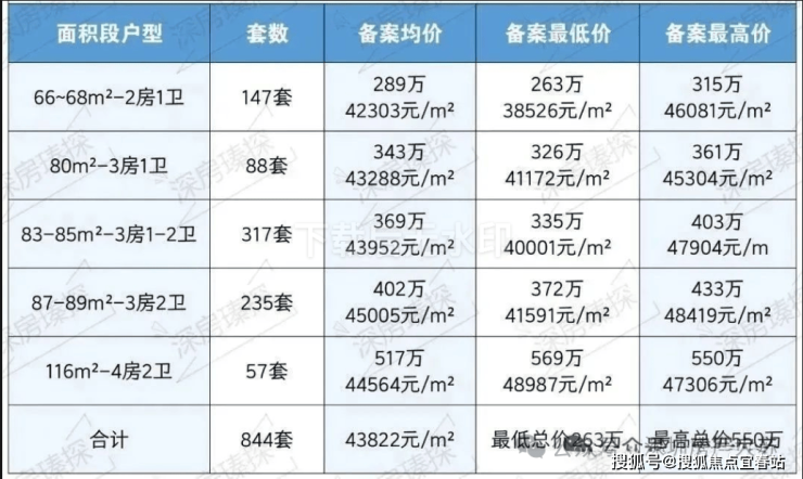 近期宝安松岗这个楼盘将会调整价格,“璟荟名庭”,是在2023年5月份取证入市的新楼盘,当时推出844套房源,面积有66-68㎡的2房,84-85-89㎡的3房,116㎡的4房户型,备案均价4.4万/㎡,备案单价3.85-4.9万/㎡,总价在263-570万/套。