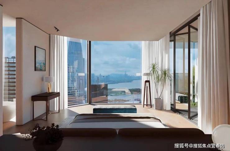 超高区(200米以上)及顶楼:500-1050㎡顶级大平层,提供总统级居住体验,如独立电梯厅、双主卧套房、270°观景客厅等。