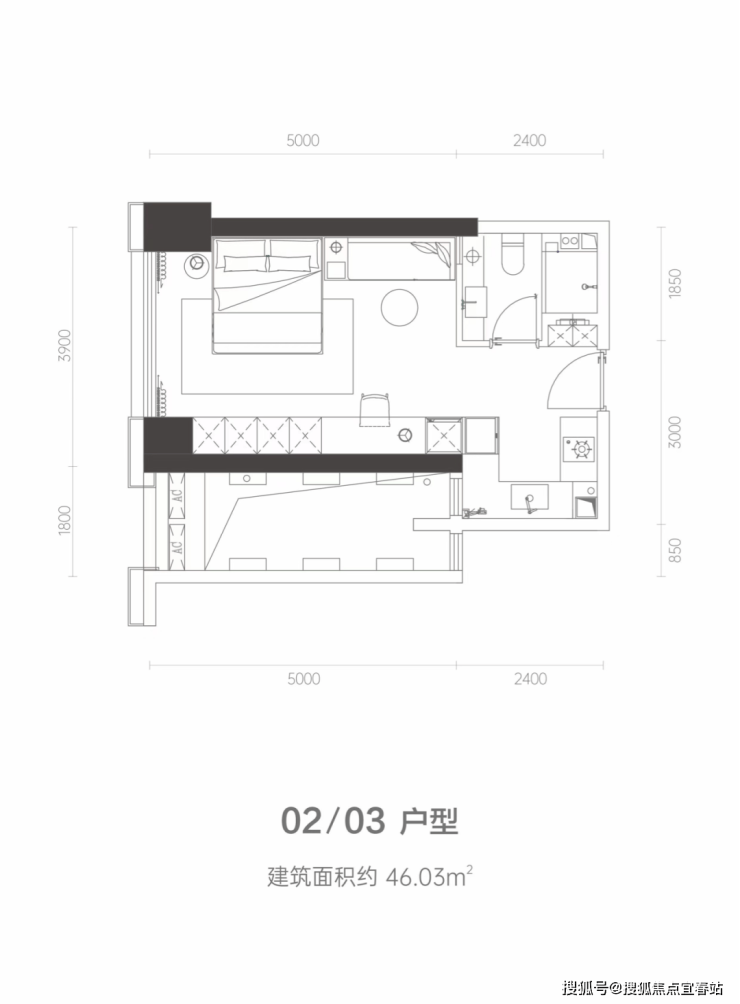 公寓户型面积:46㎡~92㎡