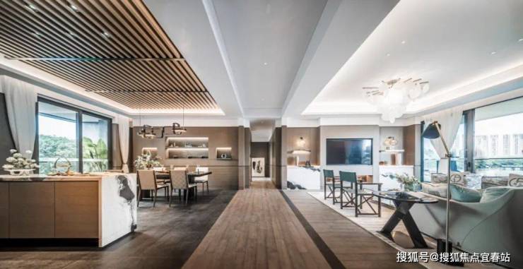 客餐厅无界相连,南北光线景致与室内互通,客厅大量木质元素的使用,搭配黑、白辅色,营造一派禅意素雅之美。