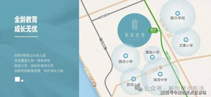 项目自带9班制公办幼儿园,学区覆盖九年一贯制固戍小学、深圳市海湾中学,启航精英人生路。