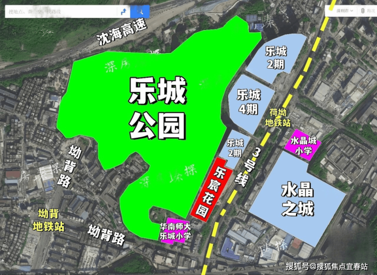 乐宸花园,位于深圳市龙岗区园山街道龙岗大道与坳背路交汇处北侧,地处龙岗大运新城核心地段 。大运新城是深圳市六大"城市新客厅"之一,承担着国际商务中心、国际教育中心、创新枢纽中心、创新研发中心和文体文化中心五大核心功能 。作为深圳东部CBD的核心区域,大运新城享有约1.4万亿东进战略的重资投入,是深圳城市发展"第三极"的重要组成部分。
