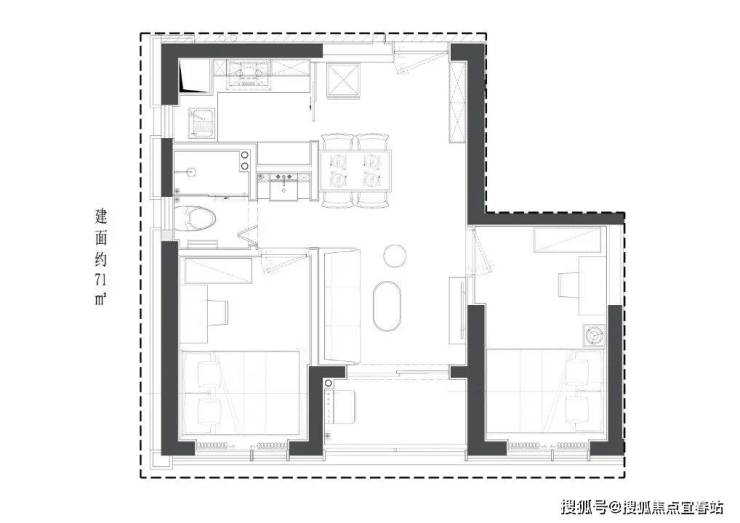 71平2房户型图