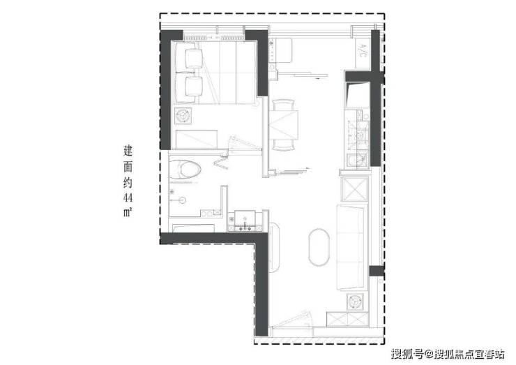 44平1房1厅房户型图