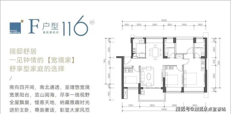116㎡的4房2厅2卫,F户型,