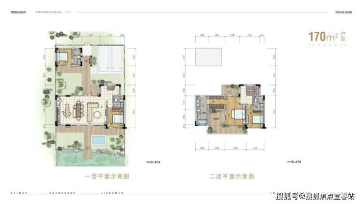 2、建面约130平的合院,实用空间达约290平,完美符合三代同堂的居住需求。二层一字型的布局,使得整个主卧视野更加宽敞,将湿地景色一览无遗。