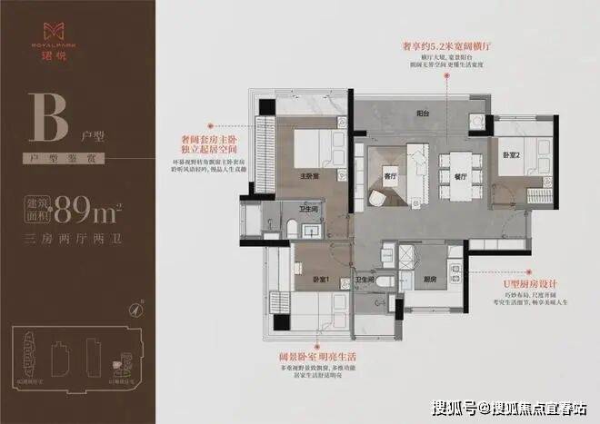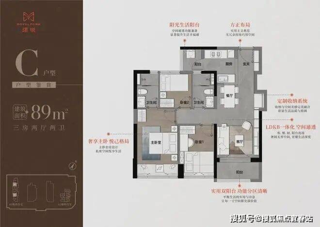 【89㎡三房二卫】