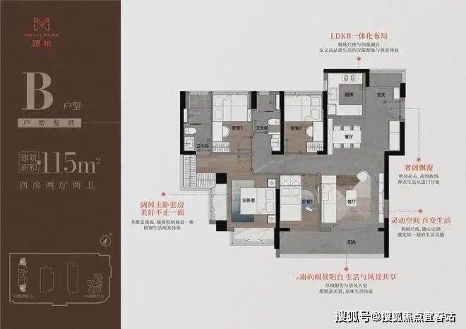 面积:88-115㎡3-4房