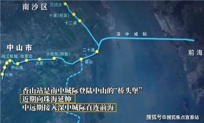 位于马鞍岛的香山站,是南中城际进入中山的第一站,也是一个枢纽站点,近期向珠海延伸,中远期接入深中城际直连前海!