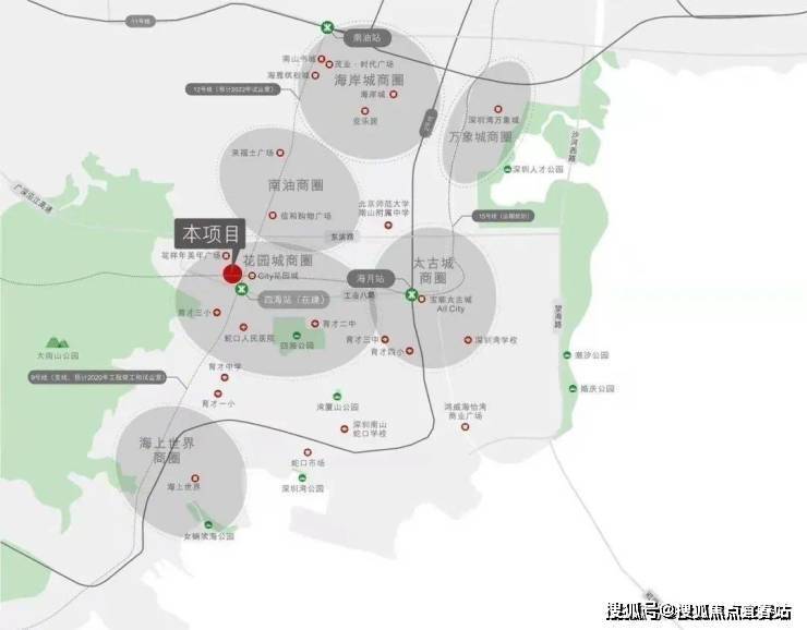 轨:双地铁无缝接驳(12/15号线四海站)本项目地下商业,已开通的12号线连接西部发展轴,未开通的15号线全长约27km,被称为前海环线;