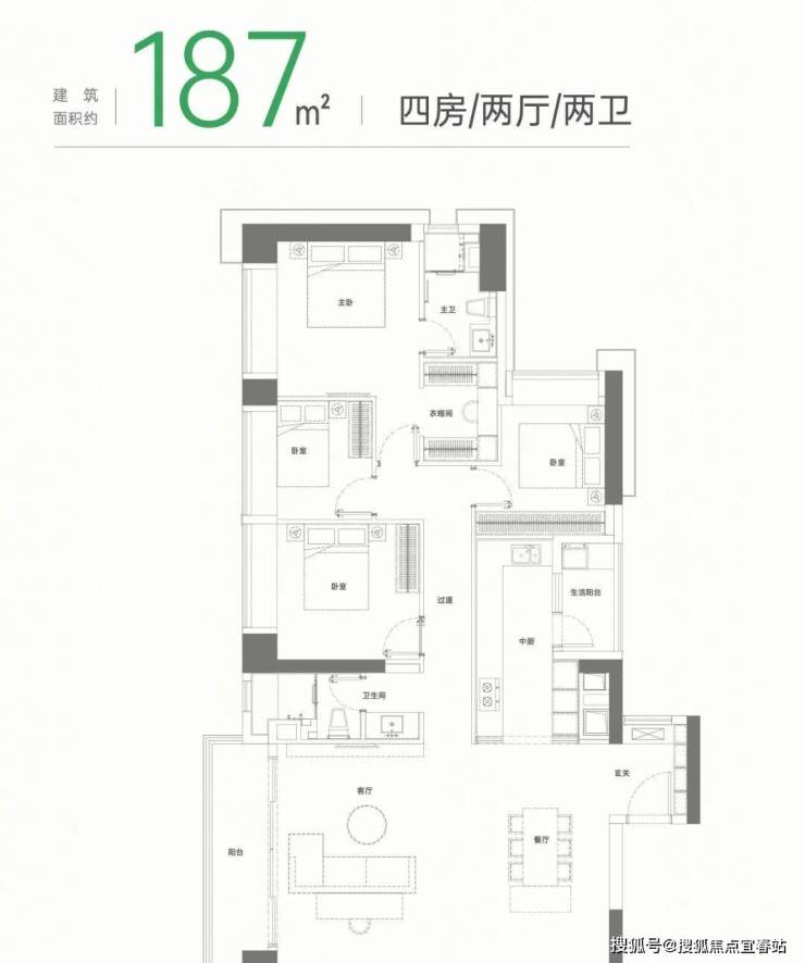 187平四房两卫本项目里供应量最少的大平层,四开间双阳台设计,主卧配备衣帽间,空间非常阔绰。另外本户型都位于高区,无遮挡西南向,可以俯视高尔夫公园+深圳湾海景+滨海城景,三位一体,景观面非常震撼。
