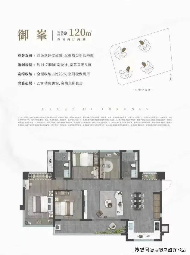 120㎡的4房2卫,折后总价412-456万/套,单价3.46-3.81万/㎡。