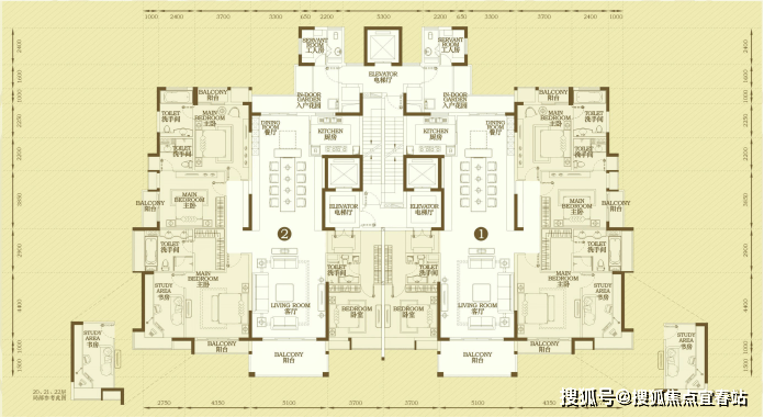 282户型:五房两厅五卫, 南北通透,前后观景大阳台,工人专属电梯,尊崇备至