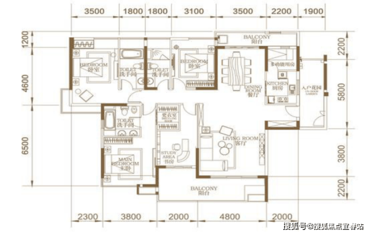 188㎡四房两厅三卫,全景凸窗,通透视野