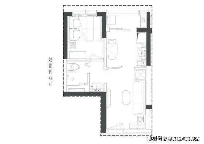 44㎡1房总价:280-300万单价6.3-6.8万