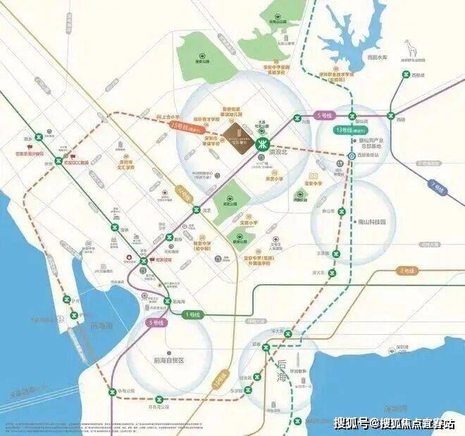 地铁15号线(在建中):起于西乡、终至前海,串联南山西丽、科技园、大铲湾片区,打造前海内环黄金圈。