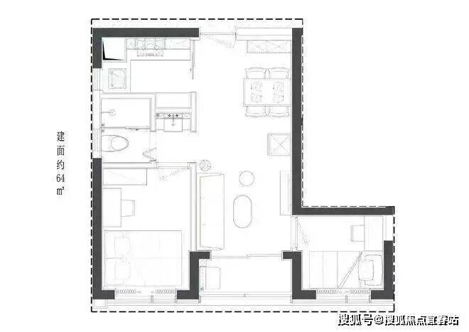 目前在售的商务公寓户型包括44㎡的1房、53-56㎡的1房以及63-65㎡和71㎡的2房2厅1卫。