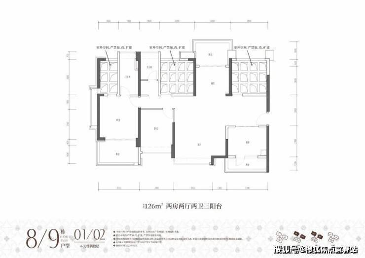 ①高阔奢享:建面约86-176㎡墅境宽宅,改善型大四房,全南向户型天然舒适;两梯三户低梯户比,多阳台露台设计,悦享阔绰居住空间;方正户型结构搭载更多半开放设计,高阔空间实用率与灵活性大幅提升。