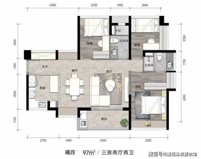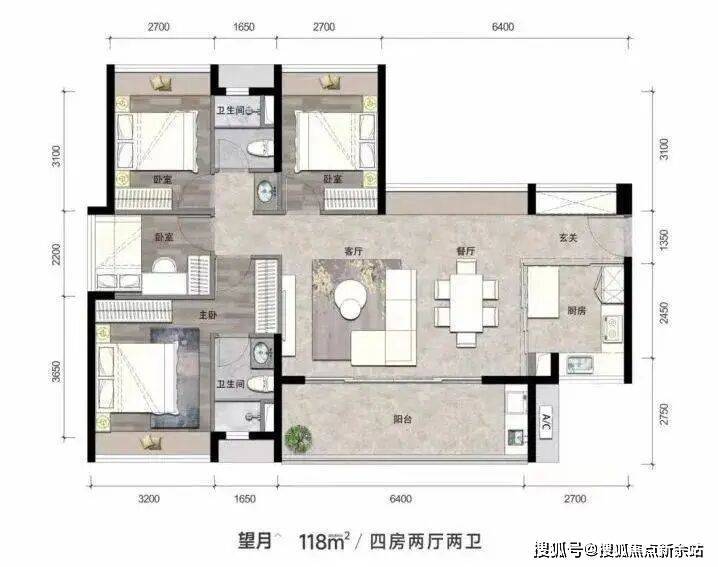1、幸福三房,尺度宽阔有序,承载更多欢乐