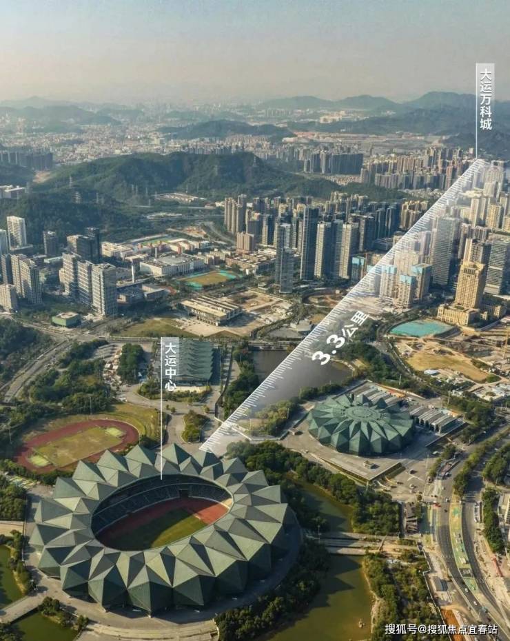 项目位于龙凤片区交界处, 直线距离大运中心仅约3公里 ,比龙岗很多片区都更近大运中心,同时拥有双城核心配套。