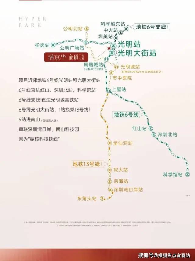 交通配套: 项目距离6号地铁线“光明站”约800米,步行需要11分钟左右,2站到凤凰城站,可以换乘13号线,4站到光明城站,这里可以换乘光明城高铁站/6号地铁线,6站到宝安上屋站,11站到南山西丽留仙洞,14站南山高新园,18站到后海。周边还有龙大高速、南光高速、深圳外环高速等交通要道,快速通达各大区域。