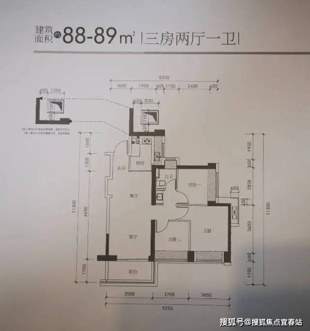 06.东南向【建面89㎡3室2厅1卫】,3梯6户,层高3.00米,总楼层47F;约360万