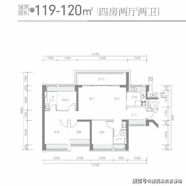 05.西北向【建面120㎡4室2厅2卫】3梯6户,层高3.00米,总楼层46F,约510万