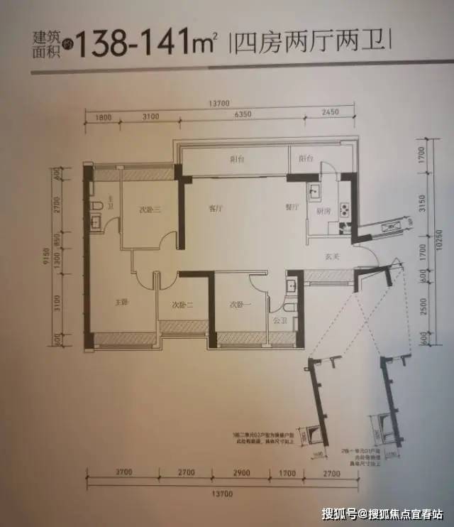 02.西北向【建面141㎡4居2厅2卫】2梯4户,层高3.00米,总楼层47F;约620万