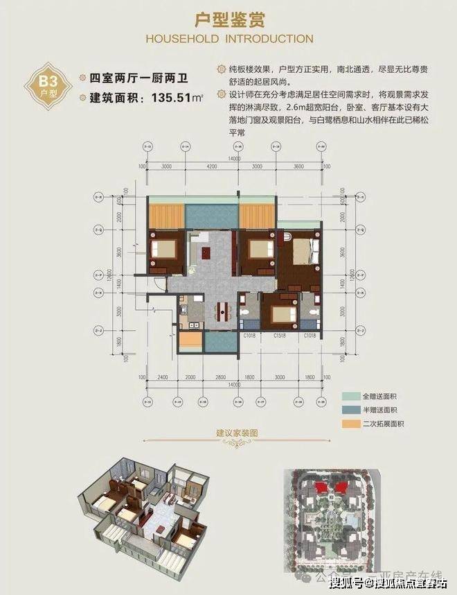 2.主次卧室、客厅特设观景阳台,让视野随着地面延伸,四季变迁尽收眼底。