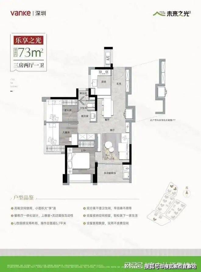 万科未来之光主要打造墅区品质刚需、刚改户型,项目具有一定的地理位置优势,距离前海、宝安等核心板块都不远;开盘优惠幅度拉满,在一定程度上给购房者让利;户型设计实用率颇高,73㎡的三房一卫、80㎡的三房两卫、98㎡的四房两卫,让购房者以尽可能低预算实现置业一步到位。