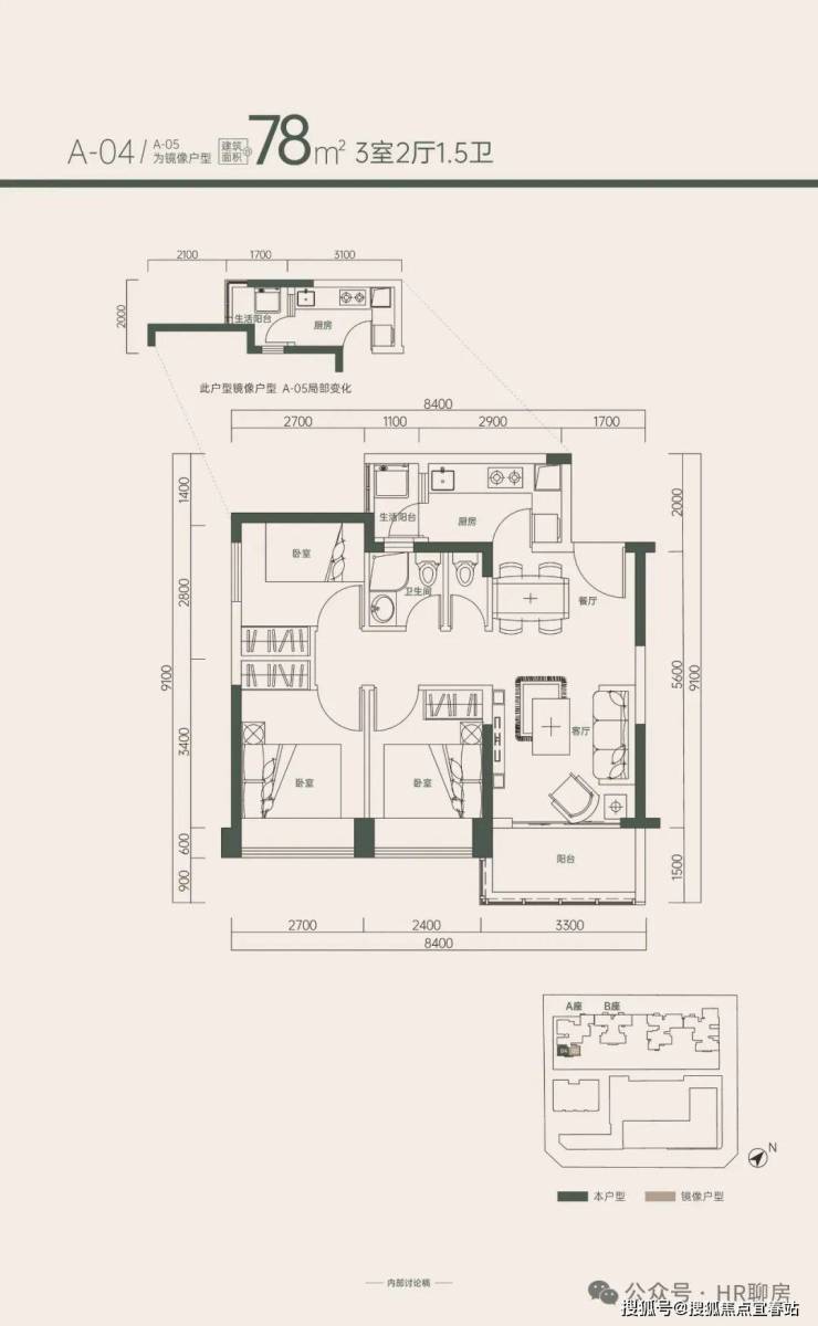 ◇ 户梯比:1栋A座3梯8户;1栋B座2梯4户