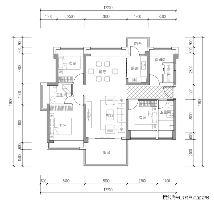 舒适三房,方正实用,两卫设计