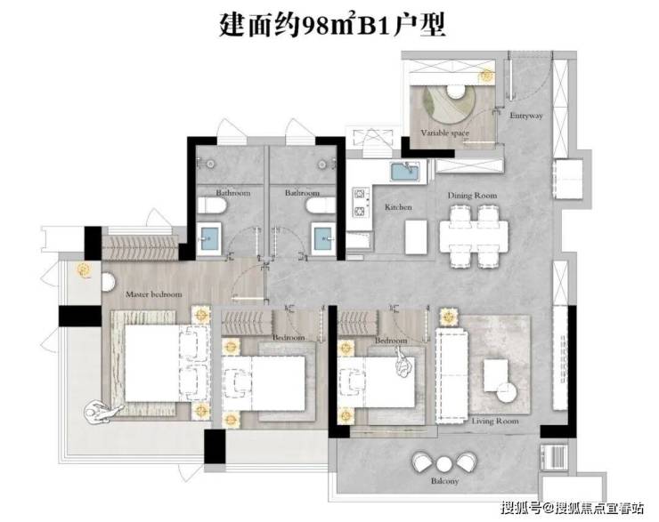 产品以主打刚需,有88㎡、98㎡、108㎡三至四房