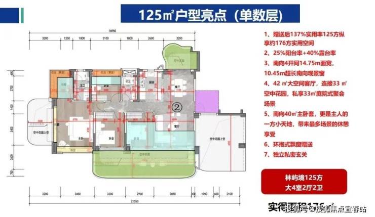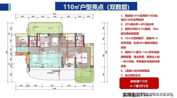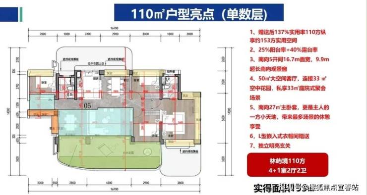 四代住宅的独特设计:招商林屿境是广州首个采用第四代住宅理念的项目,特别设计的空中花园与错层阳台,每户赠送的面积不计入产权,极大提升了空间利用率。比如,110㎡的户型通过赠送的空中花园,实际使用面积可达到158㎡,实用率高达141%。