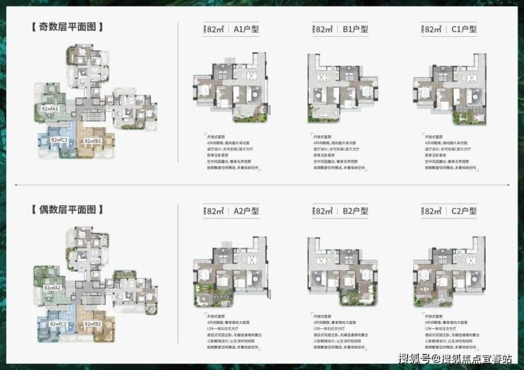 户型面积:82㎡-110㎡-125㎡(三至四房)