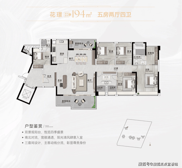 【194㎡五房2厅4卫(三套房)】南北对流双景观阳台,观景生活两不误