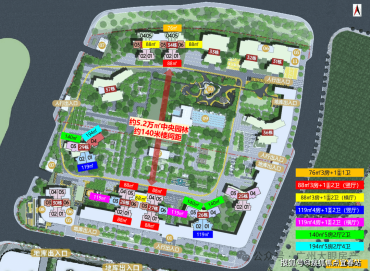 约10万㎡社区绿色园林,超百米阳光楼距,超阔央景园林一览无遗