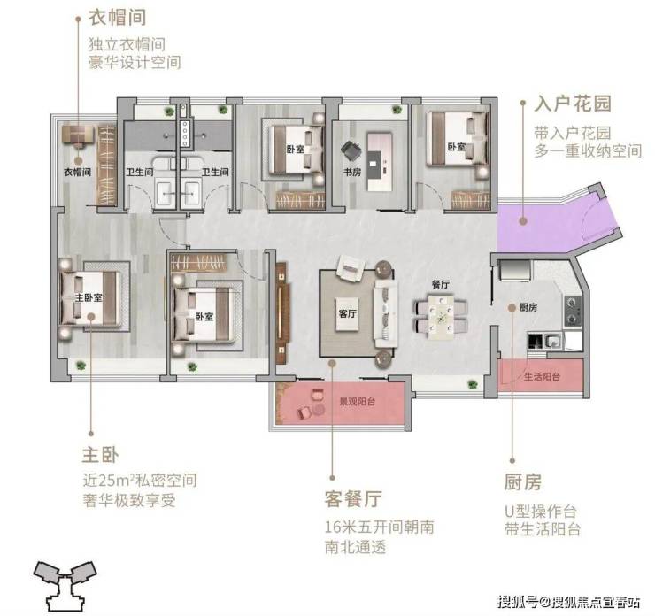 【119㎡4+1房2厅2卫】单边位布局,15米南向开间,南北通透