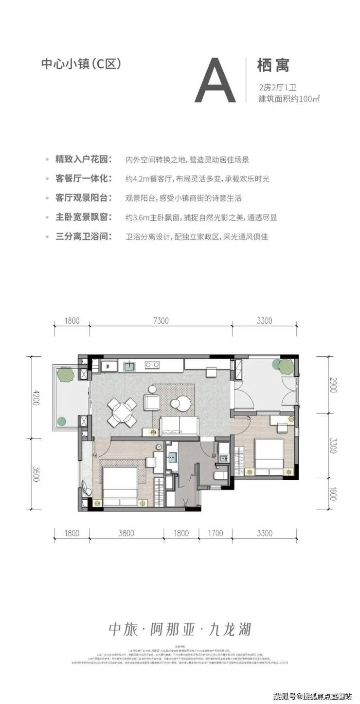 ✮产品面积:公寓A户型-100方(2房2厅1卫)