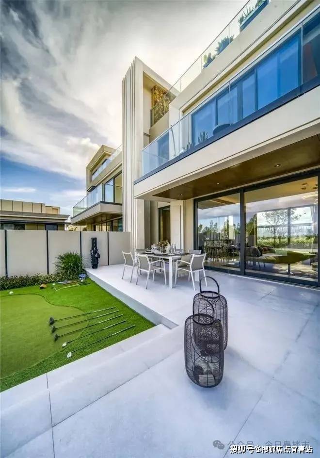 另外,户型设计则参考了亚曼酒店设计风格布局,外墙采用米白、浅咖双色结合,搭配深灰石材,呈现出轻松愉悦的感觉。部分户型还配有私家泳池甚至高尔夫练习场等,让业主真正放下疲惫,享受静谧。(建面约260㎡合院实景图)