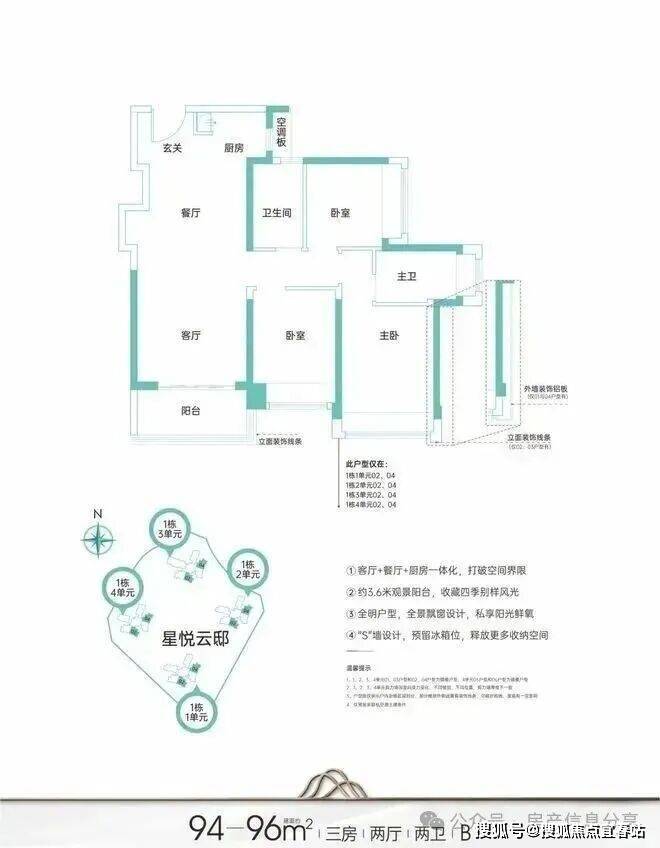 建面约94-96㎡|B