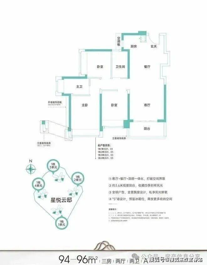 主力户型建面约95-124㎡臻品三至四房,
